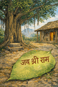 The banyan tree was still standing calm in front of his cottage. The small Hanuman idol, however, was not there under it!